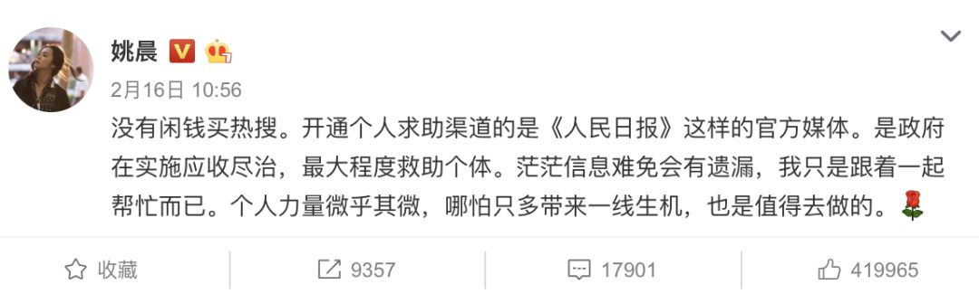 哪怕她的发声再密集,也从来只是简单的转发,顶多言简意赅地圈出关键信息: