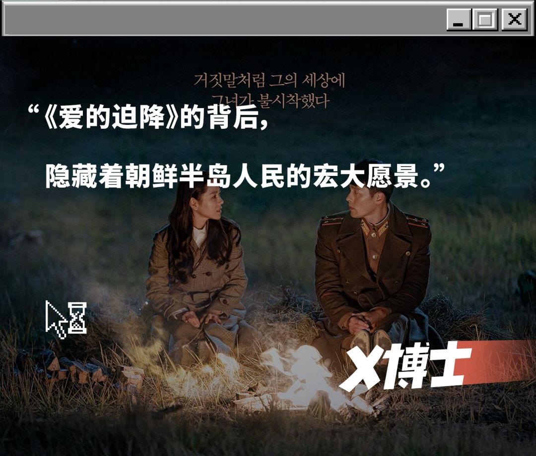 看完之后,我意识在这部爱情连续剧的背后,隐藏着朝鲜半岛人民的宏大愿景。