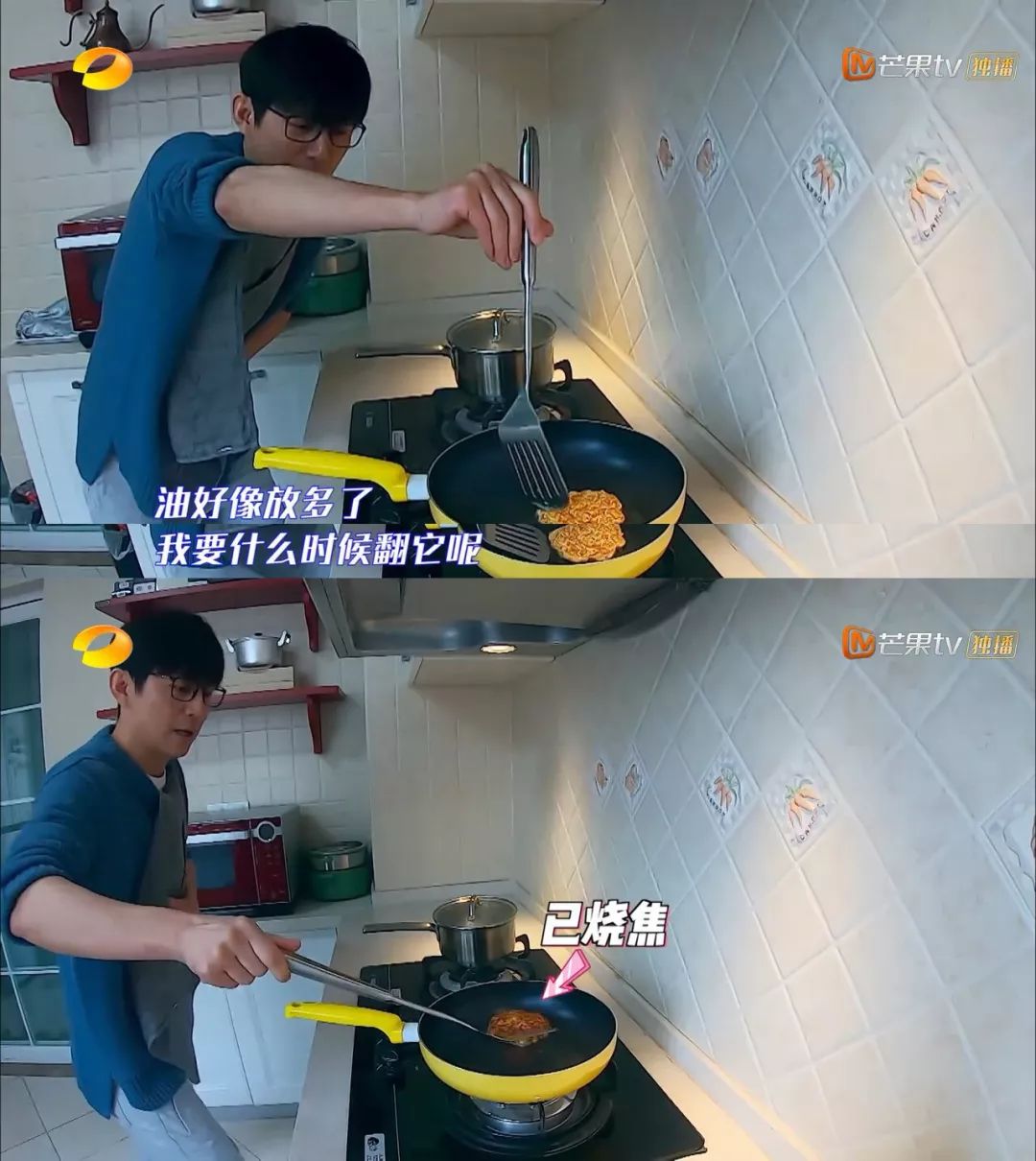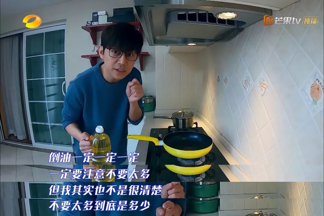刚刚一本正经对着镜头说完“倒油不要倒太多”