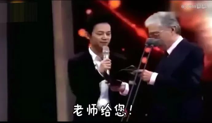 正当焦晃老爷子在台上发愁时,何炅悄悄从主持台走到了礼台上。