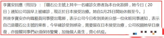 除了回应网上的传闻之外,李宝安也是向公司的众多艺人发出邮件说明了此事,并表示公司祝愿她早日康复,并且还提醒大家加强个人卫生,齐心抗疫等。