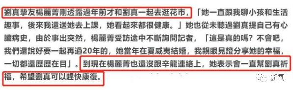 可是稍早几天的时候我们看到的新闻并不是这样啊,当时有新闻写刘真病危,她老公辛龙出面否认,说他们全家只是例行的健康检查,更没有用ECMO,不要想太多。