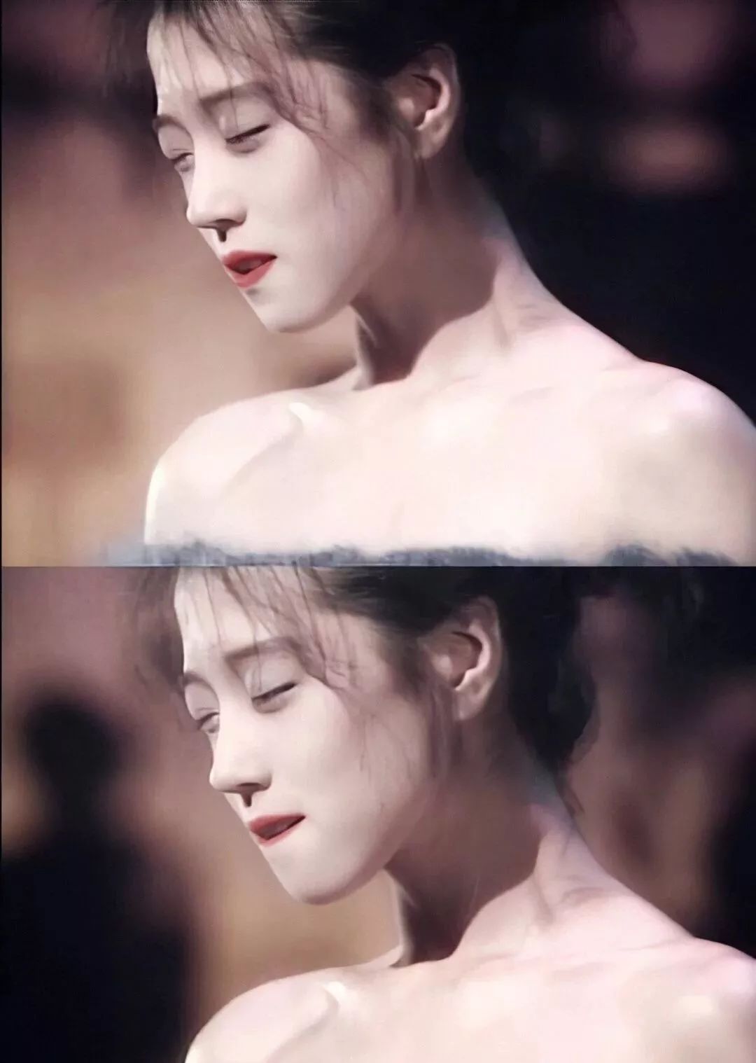 可一旦有暖调氛围+动态神情的加持,就能明显感受到她身上的矛盾风情。这种如隔云端的隐晦诱惑,配合本身并无多少情欲色彩的寡薄露水颜,把这种风情推至高潮。