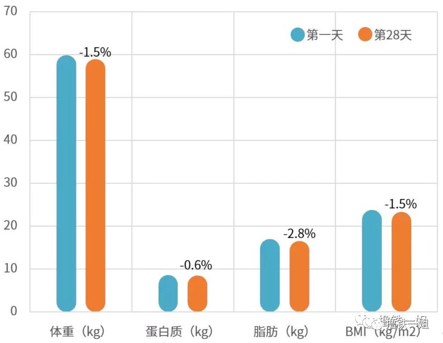 这240名实验者在进行20天斋月后,体重、BMI、腰围、体脂确实有所下降。
