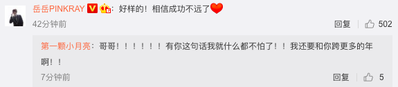 2月20日,身在抗疫前线的医护人员晒出身穿写着“小岳岳”防护服的照片,并称:“哈哈哈,姐姐不会写PINKRAY给我写了岳明辉,终于还是把你的名字写在了衣服上。”随后,ONER队长岳岳暖心翻牌:“好样的!相信成功不远了!”并附上一个大大的红色爱心。
