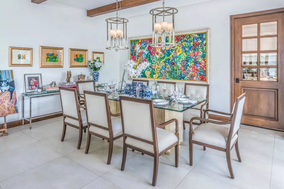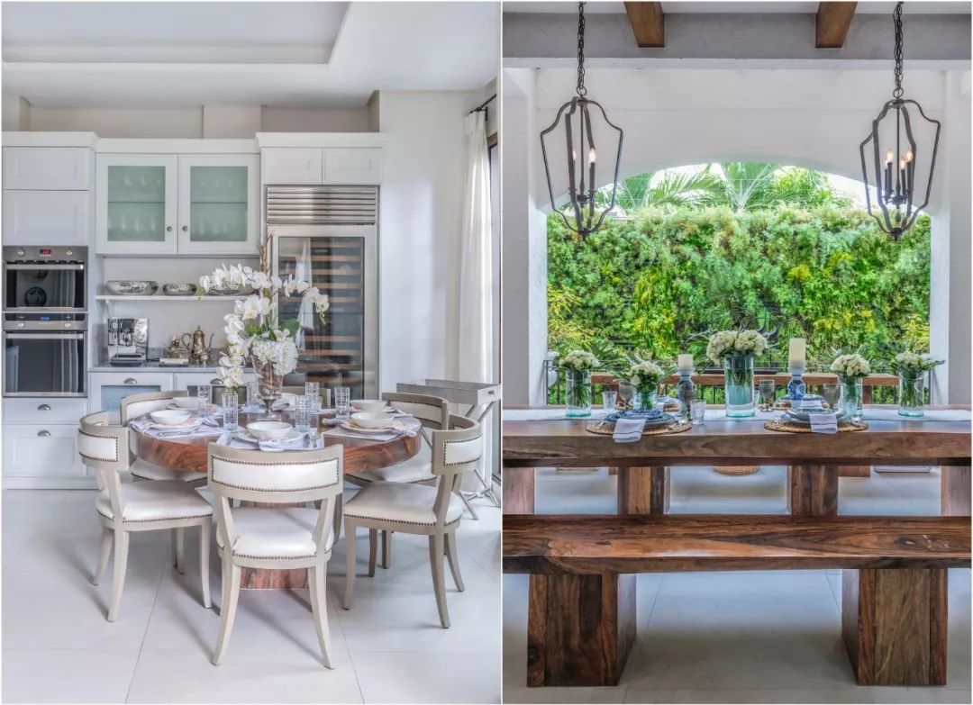 ▲ 起居和用餐区位于一楼,光餐桌就有三张,适用于不同的用餐人数和场合,通透的空间会人感觉更为舒服。
