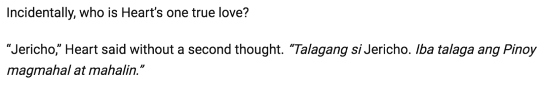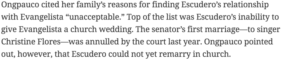 ▲ 但Heart的父母,尤其是父亲也许深受华人传统观念影响,对此依旧不满。他们要求这对夫妻签下婚前协议,规定Heart的财产只属于她自己,而Chiz的财产也属于她。这也是上面提到了她没有更改父姓而只是在后面加上了夫姓的原因吧。