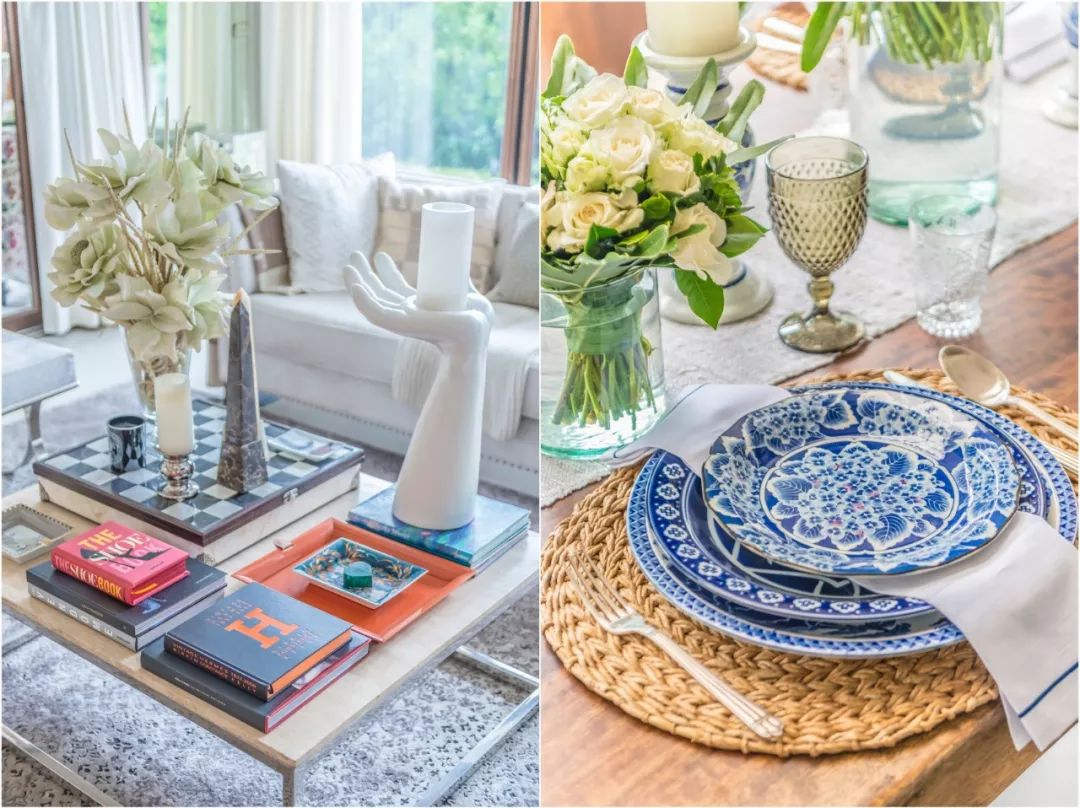 ▲ 桌子上的摆设都十分讲究,连餐桌摆盘她都专门做了期视频为大家讲解。