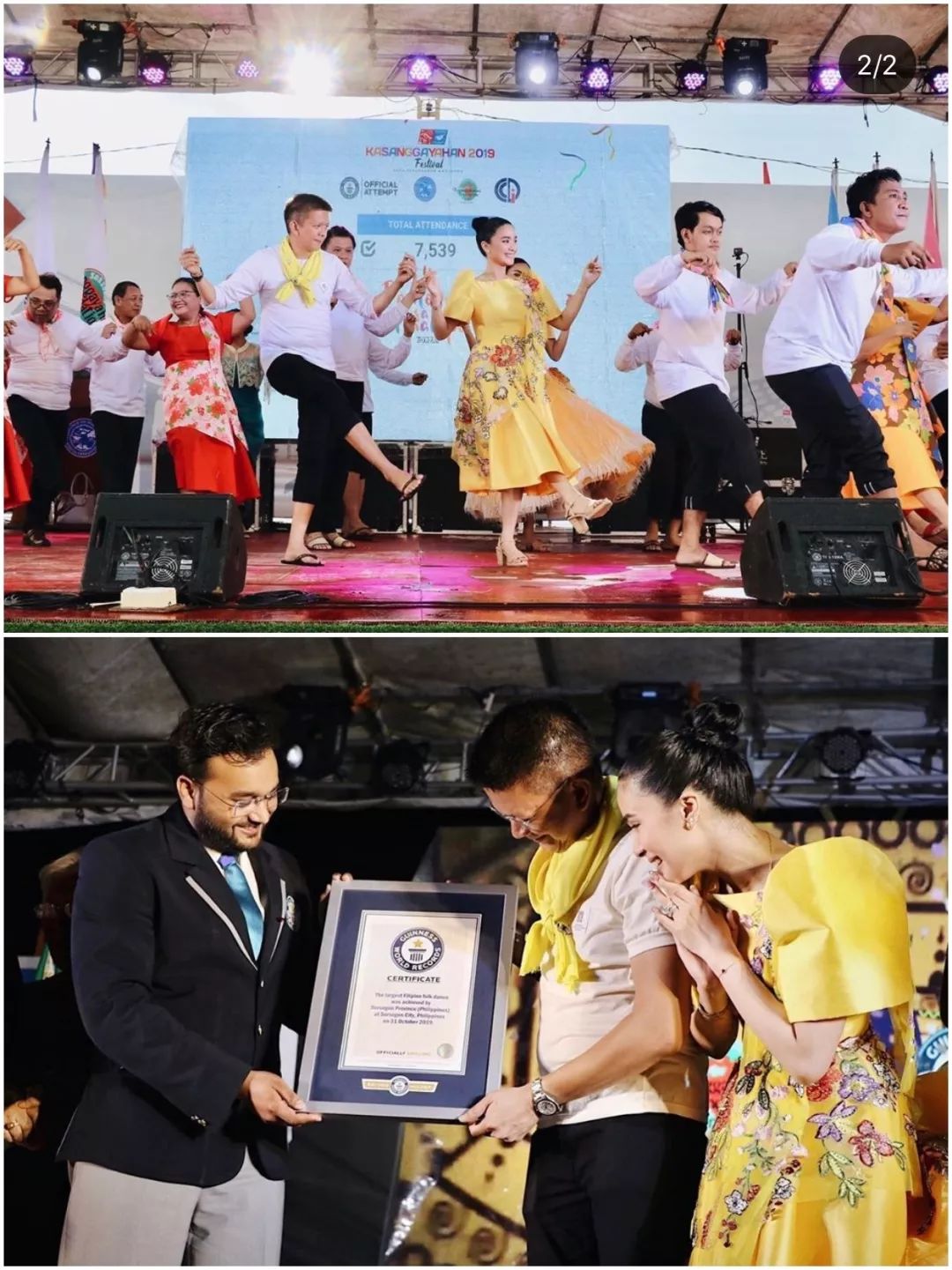 ▲ 和丈夫一起加入传统舞蹈表演,并且创造了最多人数(超过7000人)一起参与民间舞蹈的吉尼斯世界纪录。