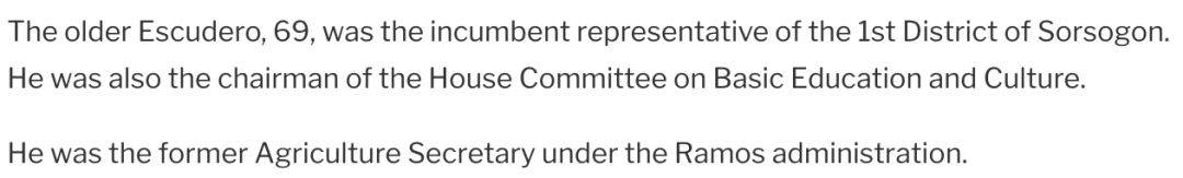 ▲ 他本科在菲律宾大学学习的法律,1996年又在美国乔治城大学获得了国际法的硕士学位。父亲曾经是农业部部长,内政部基础教育和文化委员会主席,索索贡的区代表。他的母亲亦是索索贡区的参议员。他们家从曾祖父一代就开始从政了,可以说深谙政治门道。