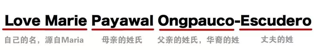 ▲ 在她的名字里,Love Marie是她的名,这也是源于天主教的信仰。作为西班牙殖民地的菲律宾大多信仰天主教,所以有成千上万个同名的Maria(玛丽亚),而又有很多人在此基础上改个小字母、加个小前缀来和他人区分开。Payawal是她母亲的姓氏,Ongpauco是她父亲的(华裔)姓氏,Escudero是她丈夫的姓。