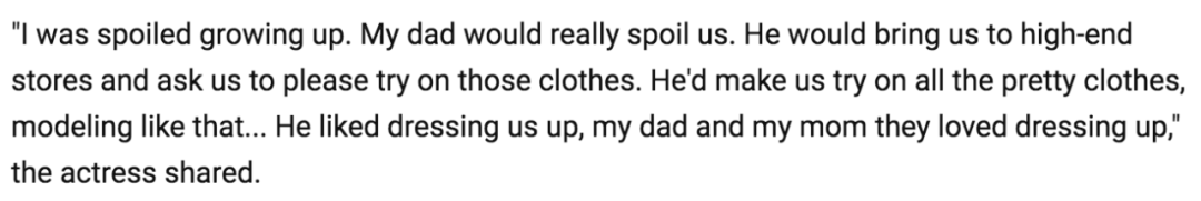 ▲ 她在一个油管视频里承认自己是被宠坏的小孩,尤其是父亲无微不至的溺爱。