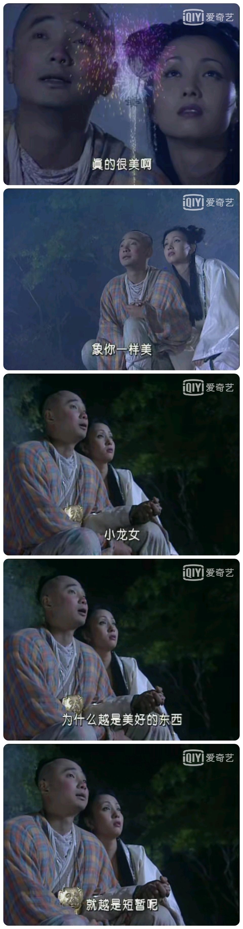 哎,故事停留在这刻多好,琼瑶阿姨非要再搞个《还珠》同人文,也就是莫名其妙的《还珠三》,侠侣变成了狗血八点档男女,整个变了味儿。