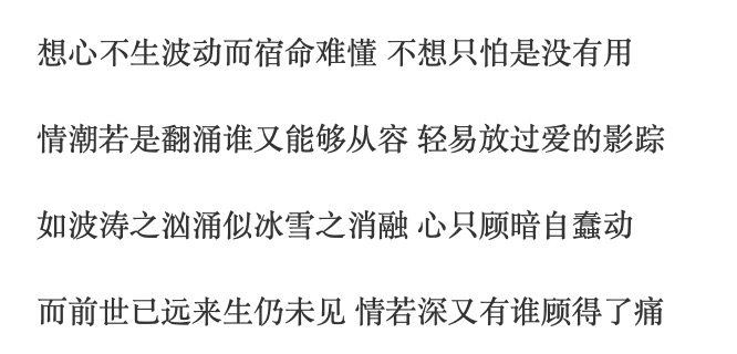都是虐恋情深的调调。不过这种要死要活不回头,跨越多少艰难险阻,生生世世都要找到你的决绝感已经不流行了。