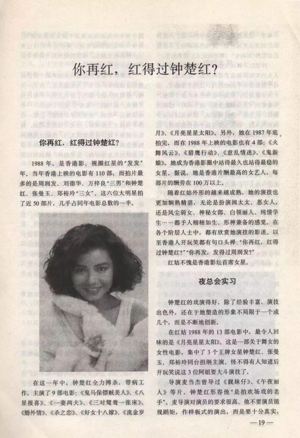 回溯钟楚红的演艺生涯,就能发现她曾经合作的都是吴宇森、关锦鹏这样的名导,搭戏的对象全是张学友、刘德华、汤镇业这样的男神。