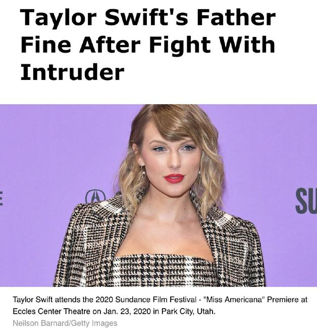 2月18日,外媒还报道了一名盗贼闯入霉霉(Taylor Swift)父亲位于弗罗里达的房子,霉爸发现后和盗贼进行了一番搏斗,之后盗贼逃走。目前,该盗贼已经被警方拘捕。