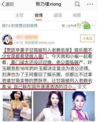 而乐视出了问题之后,熊乃瑾的操作更让人惊讶:她立马点赞了一条嘲讽甘薇嫁入豪门不久就沦为老赖,还被丈夫推出来接锅的微博~