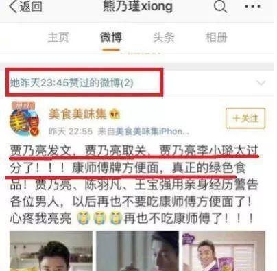 一次的话还能用手滑来解释,但之后李小璐出事的时候,熊乃瑾又点赞了嘲讽贾乃亮绿帽子的微博~