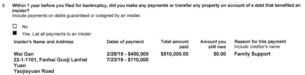 当时这份文件显示,两人以感情破裂为由提的离婚,但因为相关文件证明在贾跃亭提交破产申请前的几个月内,他还向甘薇转了三四百万,完全看不出已经一拍两散的样子,所以当时不少人也没把这个离婚新闻当个事。