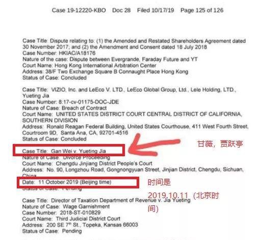 去年10月份,法律服务企业Epiq Cases网站就公开了贾跃亭和甘薇在成都市锦江区人民法院申请离婚的文件,