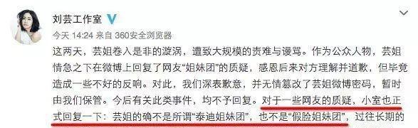 李小璐翻车不到半个月,刘芸工作室就开始强调她并非姐妹团成员了——