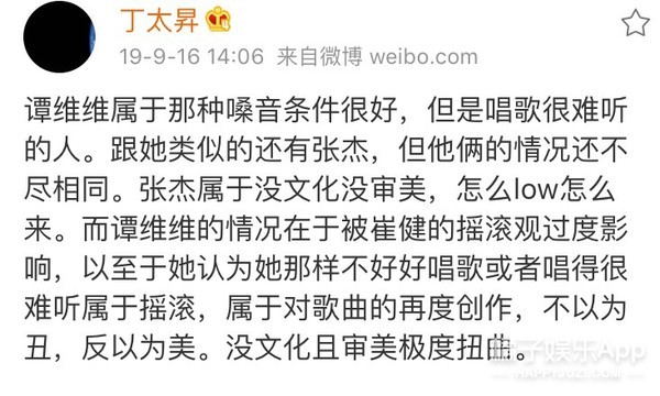 或许丁太升有音乐素养,但是未免有点“双标”了。