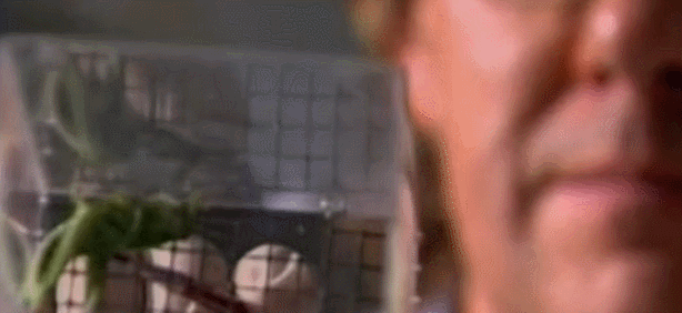 紧接着,他把蝗虫放到了一个透明箱中,里面放了几个纸球。