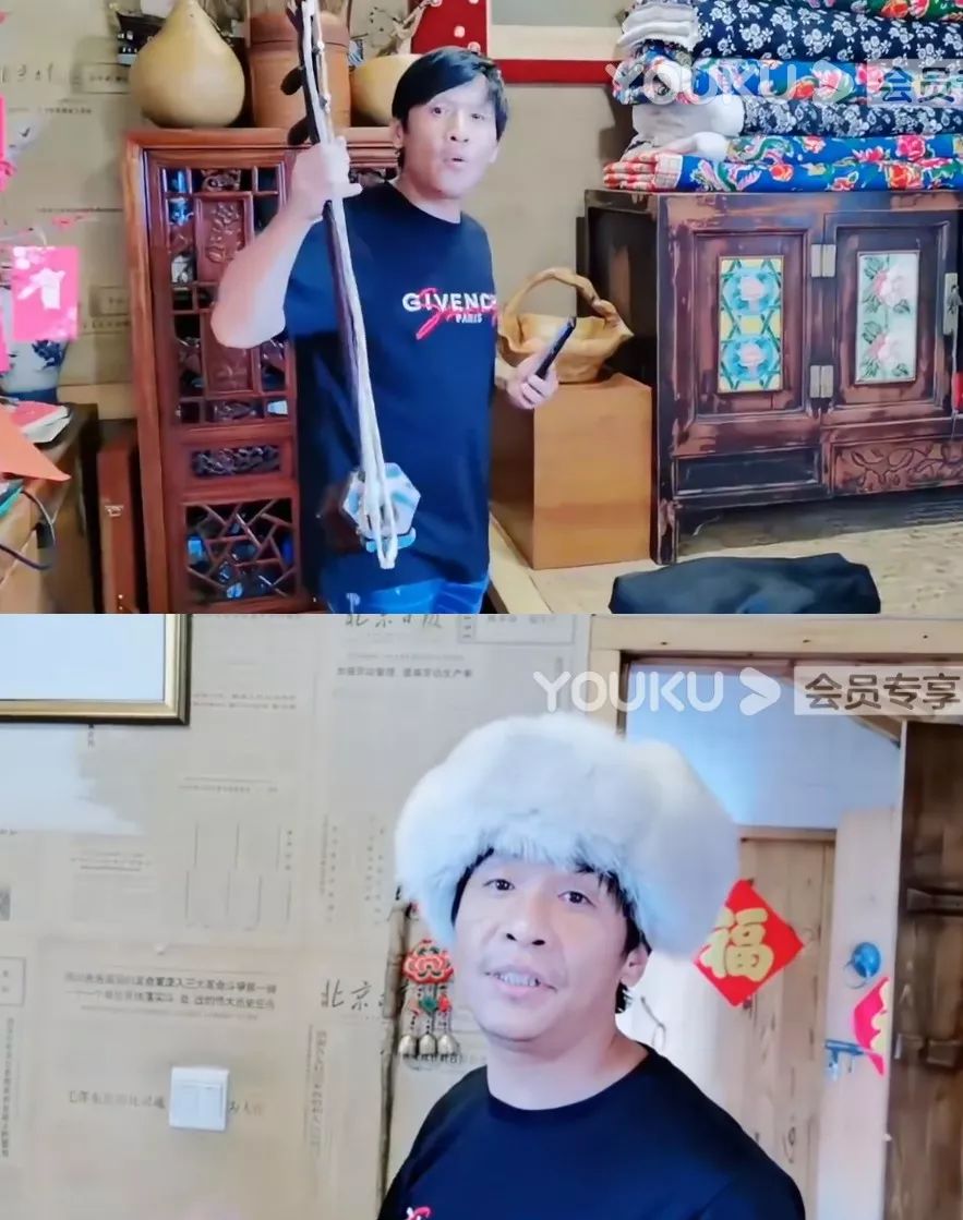 屋子里到处都是赵本山的私人物品,像柜子上是他做的葫芦瓢,炕沿上是他的二胡,门口还挂着他经常戴的白色帽子。