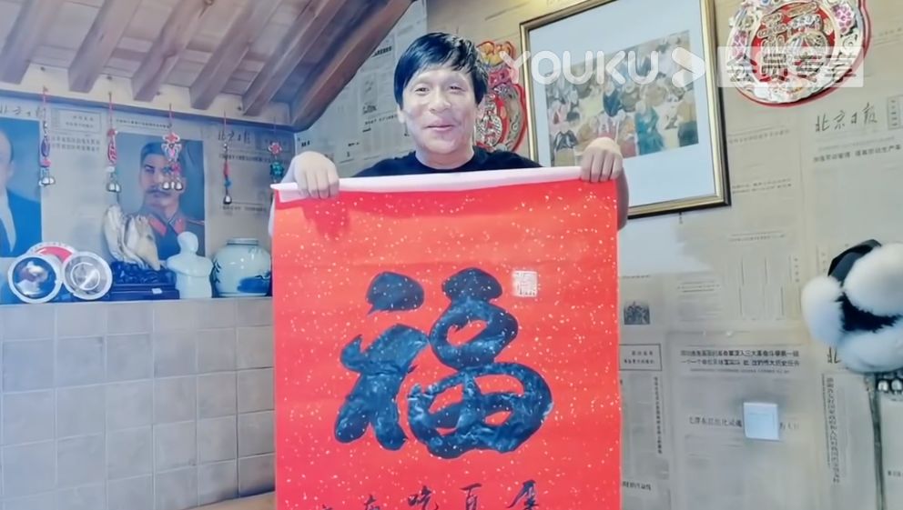 吃着吃着饭,宋小宝还拿出了自己写的福字,说是等下抽奖送网友。