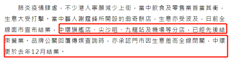 2月19日,据港媒报道,谢霆锋旗下开设的曲奇店接连曝出了关门的消息,加上如今疫情情况,所以更多人减少外出,谢霆锋最近也是抓紧时间转攻网购市场,还大力促销,企图带来更好的销