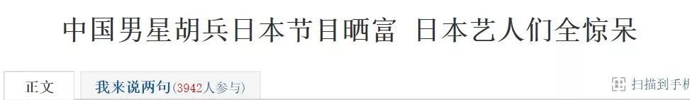 上一次胡兵大规模上新闻我记得是他上了日本一个综艺节目,说他炫富。但其实这是多年前的一个日本节目,不知道为什么忽然被翻出来。