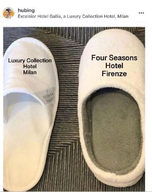 这个事情真的挺滑稽也让人有点摸不着头脑。当时是胡兵在ins上发了一段文字吐槽米兰某酒店的拖鞋。