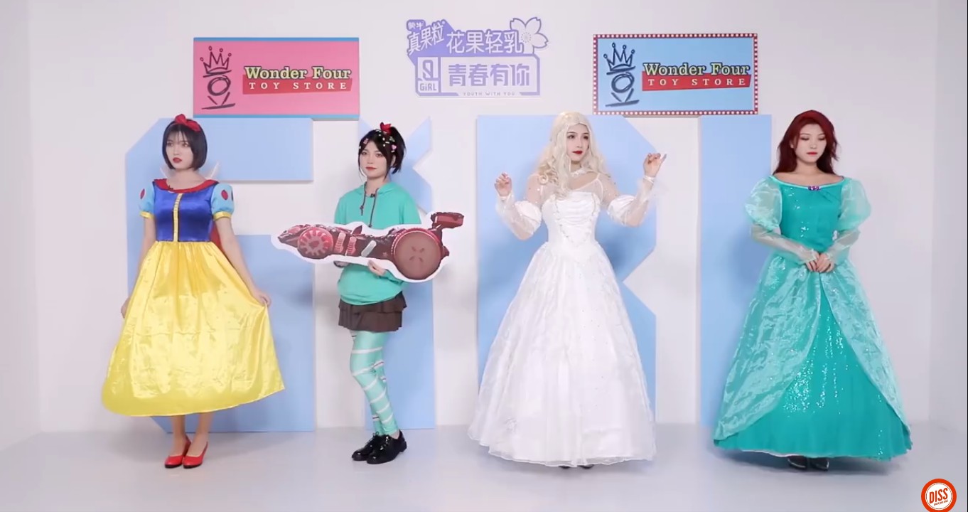 先上场的是这组四胞胎集美,冰清玉洁。是不是以为自己点开了一档幼儿卡通节目?旁白缓缓传来“传说在一个玩具店里,有四个被施了魔法的公主,她们被变成人偶摆在这里,只有收到青春制作人的支持,才会苏醒…”???哪个玩具店敢卖这么惊悚的人偶哦?