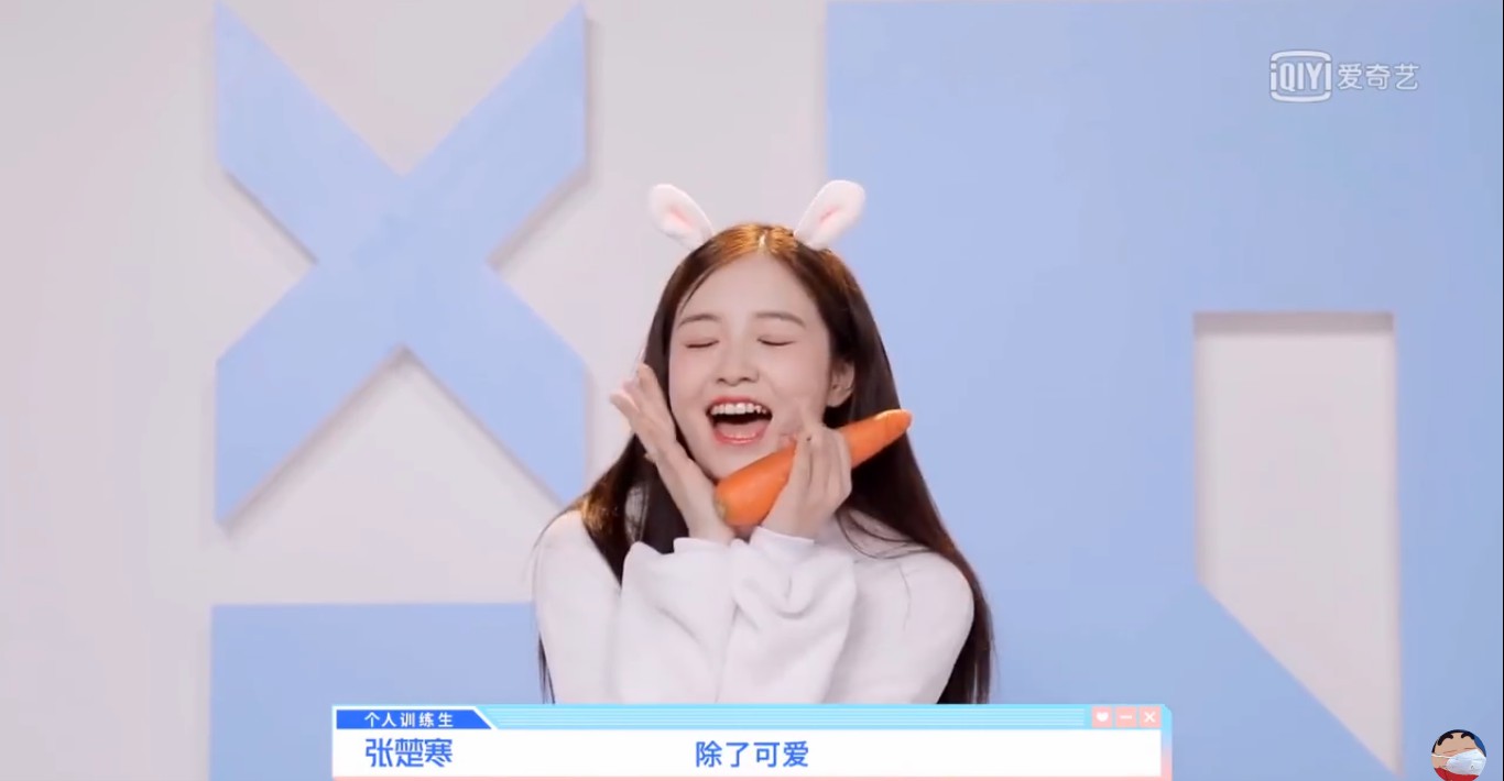 这位叫张楚寒的同学,扮演了一只兔子,上来鸦雀无声,我以为耳机坏了,直到渐渐听到她啃胡萝卜的声音???起码啃了5秒,最怕空气突然的安静。