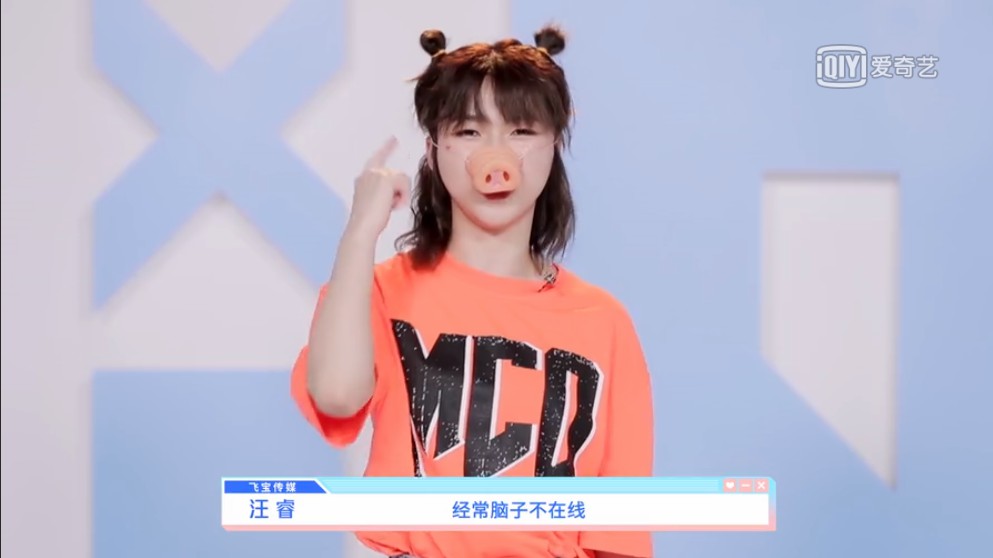 一名叫汪睿的,上来就介绍自己“我是一只超级爱唱歌的猪”然后她就真戴了一只猪鼻子,至于为什么说自己是一只猪呢?“因为我跟小猪乔治一样经常脑子不在线。”嗯,你此时此刻看起来就不太聪明的亚子…
