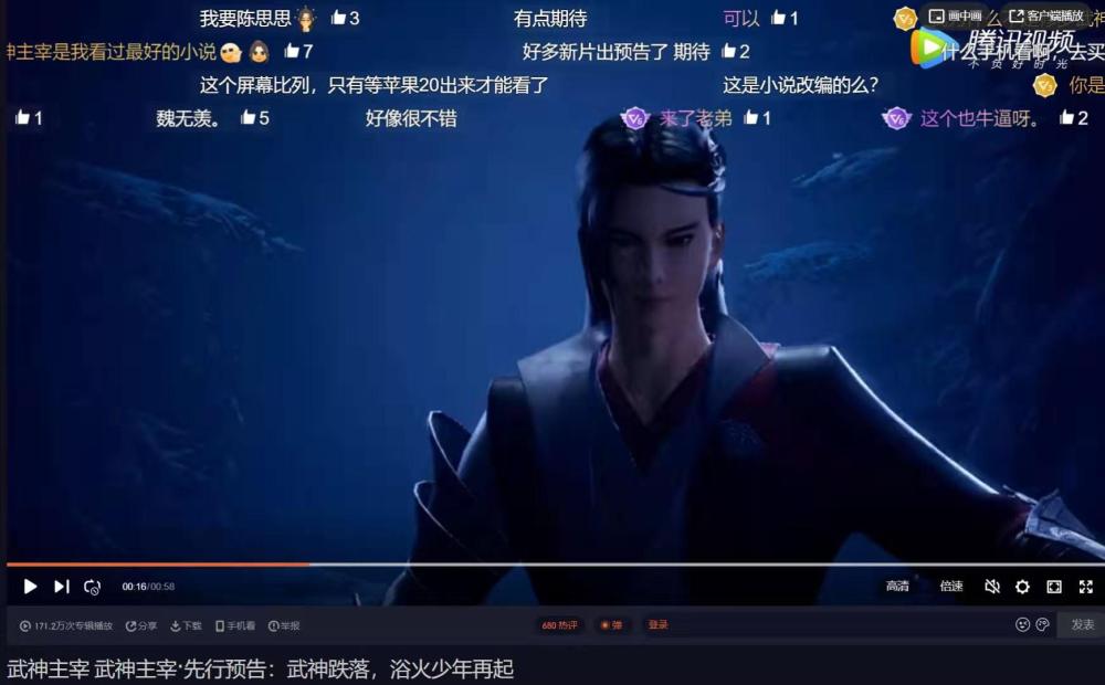 不过,面对短时间观看量的增长,不少从业人员都持谨慎态度。在腾讯视频上,《武神主宰》发布了近1分钟的预告片,在先期没有做任何宣传的情况下,该预告片点击量已近180万,弹幕里,不少观众表示出期待之情。《武神主宰》由知名IP改编,漫画、小说本身就很受欢迎。“我们在制作上非常谨慎,目前推出的线上产品也是经过很多年的积累。对于动画行业,大家听到的都是一些被神话的案例,比如《大圣归来》《哪吒之魔童降世》等。实际上,原创动画还是非常苦的,存在很大的不确定性。如果决策失误、或者项目质量不行,投进去的钱可能连个水花都没有。”张袁杰说。