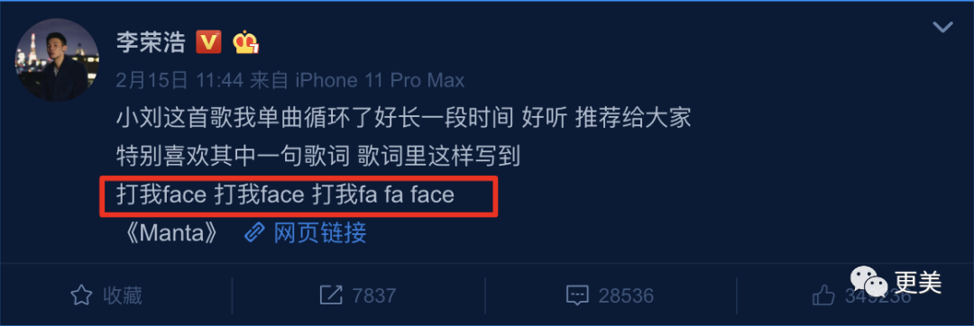 后来李荣浩发微博替刘柏辛宣传新歌,其中的“打我face 打我face 打我fa fa face ”,被理解为在内涵华晨宇。