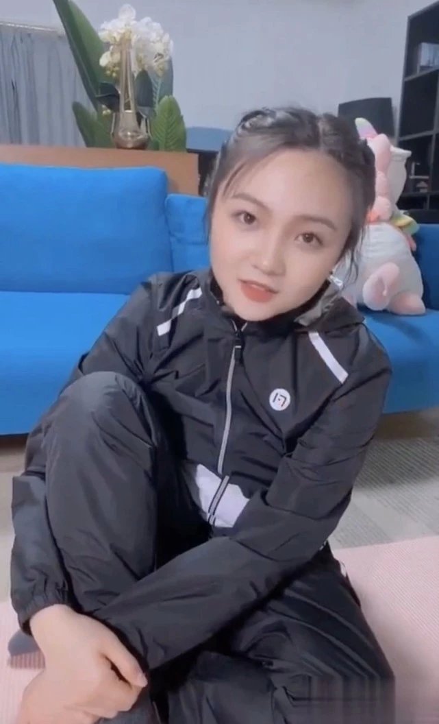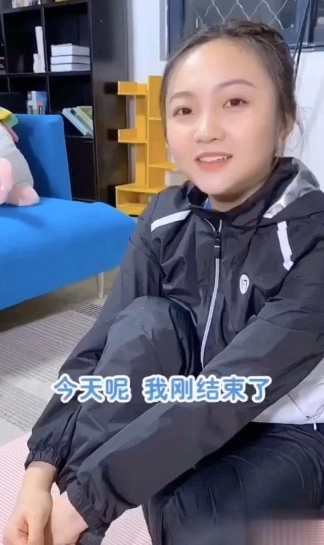 林妙可穿着一套黑色的运动服,扎起了头发,为了拍视频似乎还化了个淡妆。