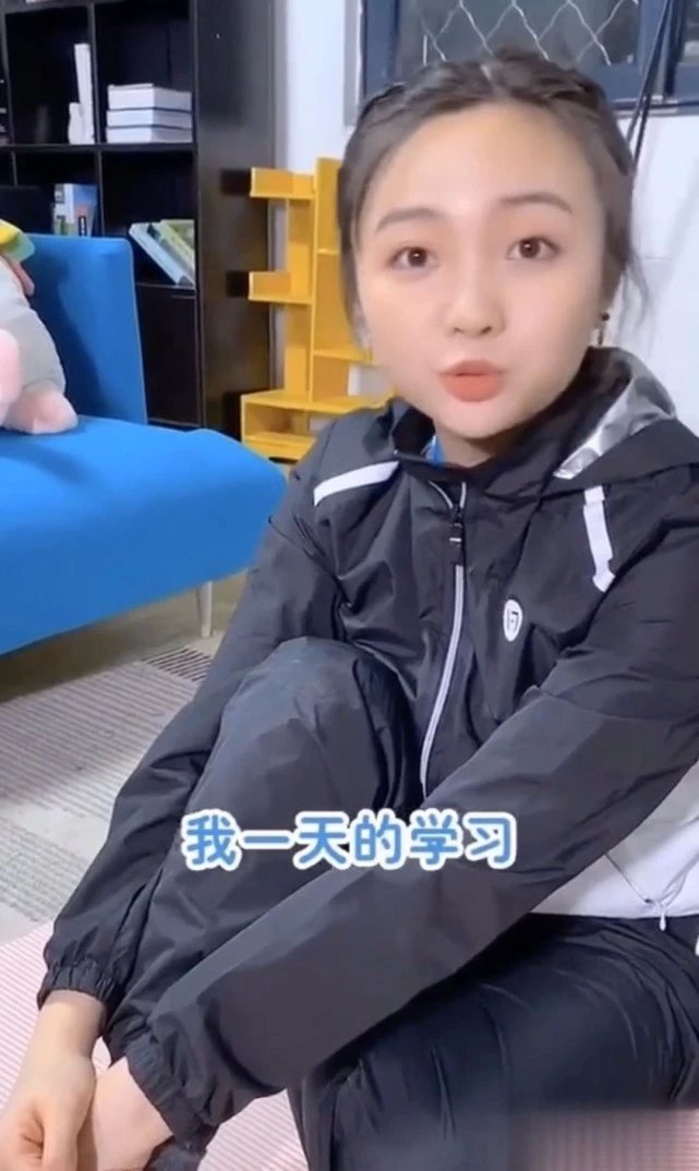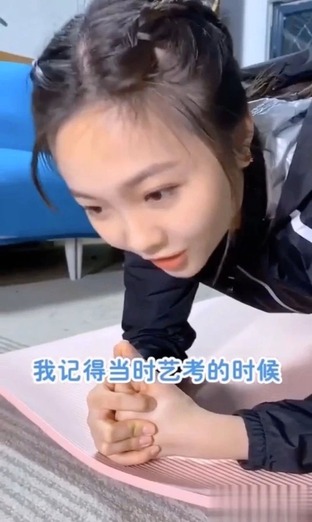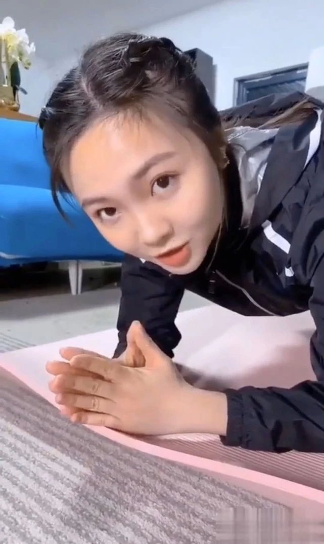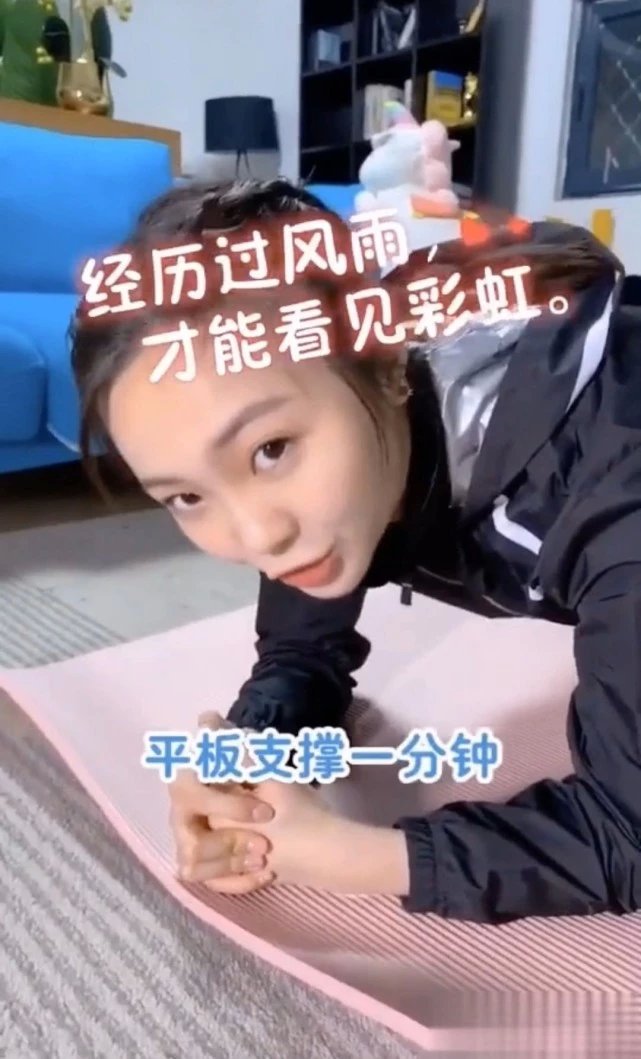 视频开头,妙可就开门见山地说自己刚完成了一天的学习,现在来教大家一个不暴汗的运动方法——平板支撑一分钟。