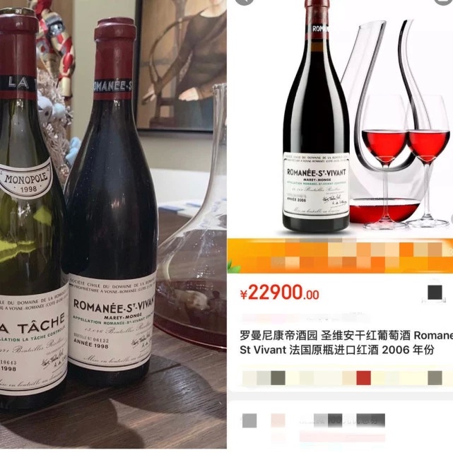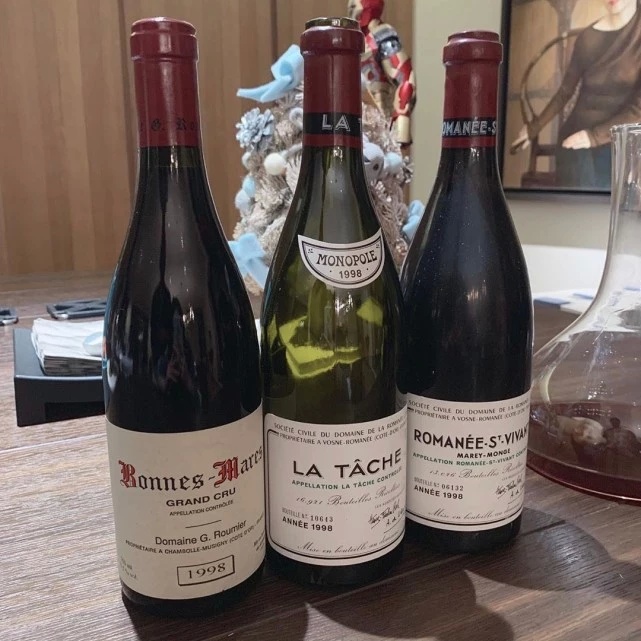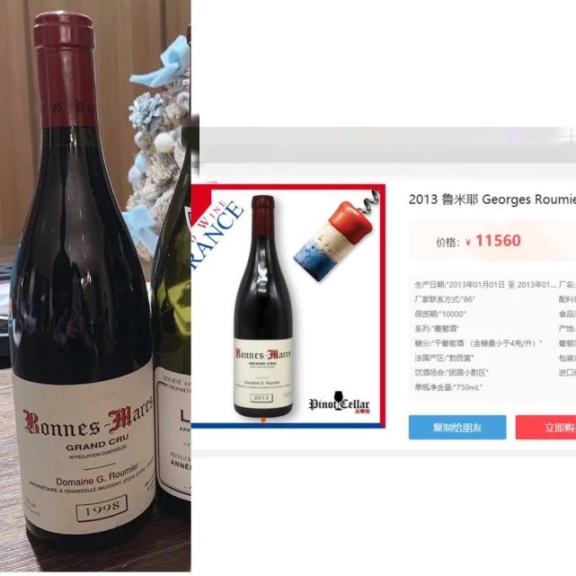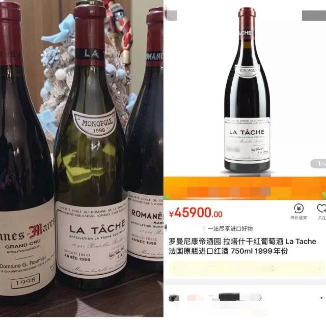 左边那瓶Bonnes Mares在购物平台的价格是1万1千元出头,中间那瓶La Tache的价格更令人咋舌,高达45900元一瓶,最右边的Romanee St Vivant红酒价格是22900元。