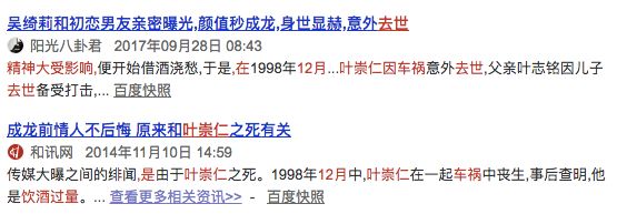 但两人毕竟还是年轻气盛,1998年年底,吴绮莉和男友爆发争吵后决然分手,叶崇仁精神大受影响,在12月因饮酒过度出车祸去世。