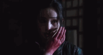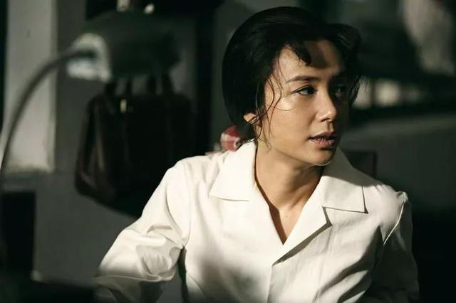 这个镜头的打光方法俗称叫“阴阳脸”,正常来讲给女演员打光的时候是不能用这么高的光比的,除非是恐怖片。但这张照片里的蒋雯丽即使被光笼罩的那半边脸,皮肤也是雪白透亮,眼睛里还闪着泪水,看起来像受了惊吓的小动物。