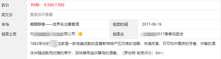 不过在2017年的一场拍卖会上,这一瓶红酒的估价是6500-7500。