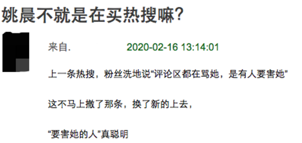 所以姚晨买热搜这件事,讲实话,是不成立的。