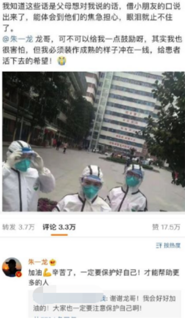 朱一龙回复在武汉一线做医生的粉丝,本来挺暖的。