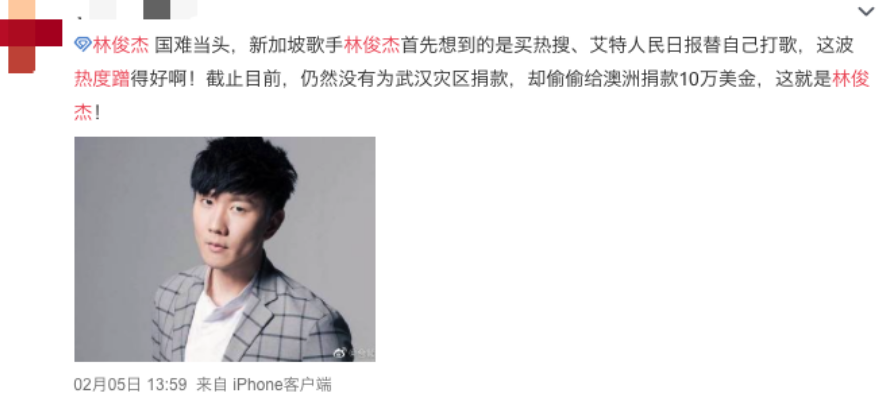 新加坡友人林俊杰被骂吃人血馒头蹭热度。