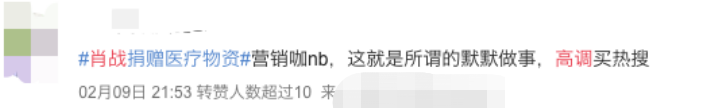还有肖战,被骂诈捐。虽然用脚后跟想也没有明星敢这个时候诈捐。