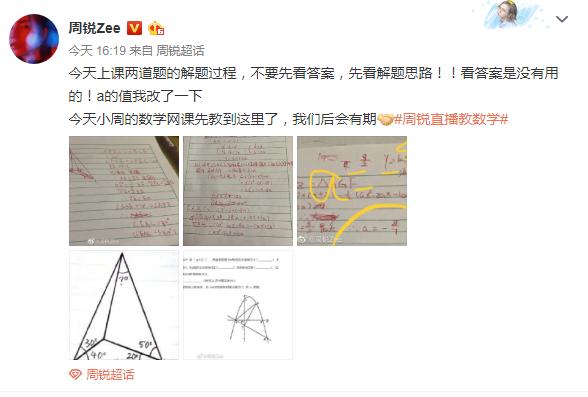 直播结束后周锐还在个人社媒账号给出今天课堂中两道题的具体解题过程,他还传授大家解数学题不要着急看答案,先要明确思路。