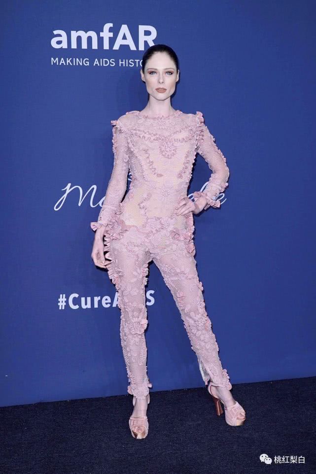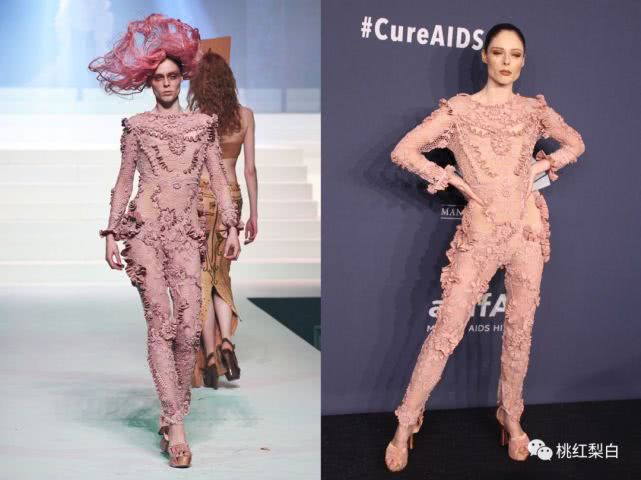 最后一位登场的,也是个意想不到的候选人:超模Coco。 可能是想来一个“自己走秀自己穿”的模式,Coco将自己在秀场演绎的另类连体服又在红毯上再度穿了出来,可惜从颜色到设计,这个look看起来,都有种不知从何夸起的尴尬感。 有点好奇,这一身谁能穿好看呢?
