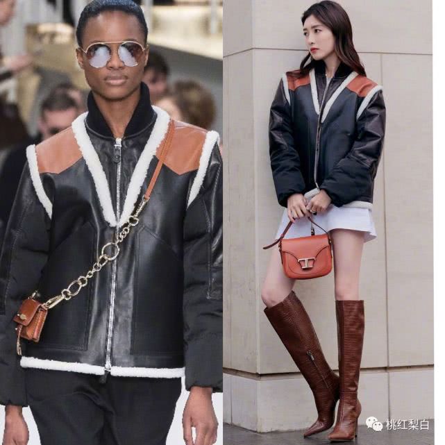 说到休闲街头造型,江疏影这一身也不错。 全身单品都来自本就大气潇洒风的Tod's,很好的完成“上宽下紧”的穿搭模式,加上这两季大热的复古中筒靴,很好的平衡了整身的露肤指数。 这件皮外套,最近正在时装周走秀的刘雯也有穿。